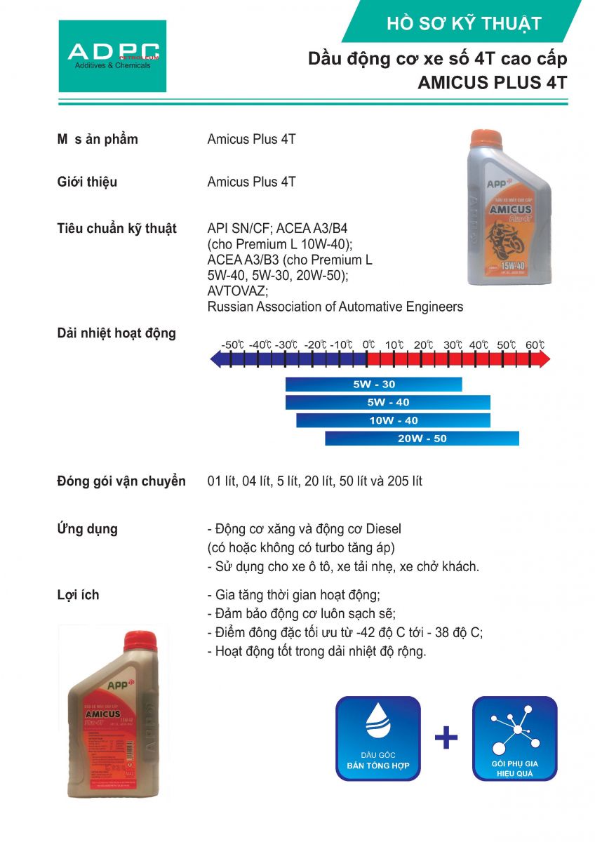 Amicus Plus 4T là dòng dầu nhờn động cơ xe số 4T cải tiến.