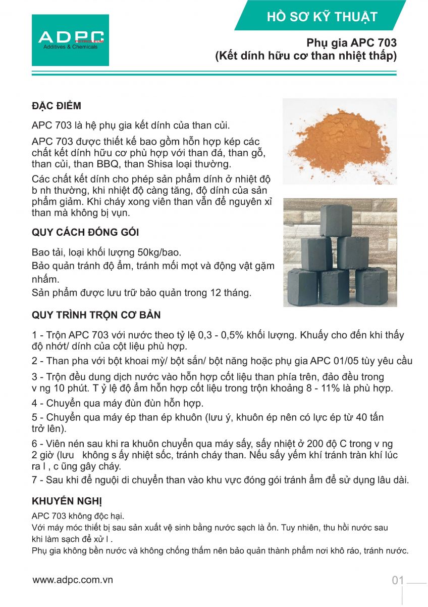 APC 703 là hệ phụ gia kết dính của than không khói.
