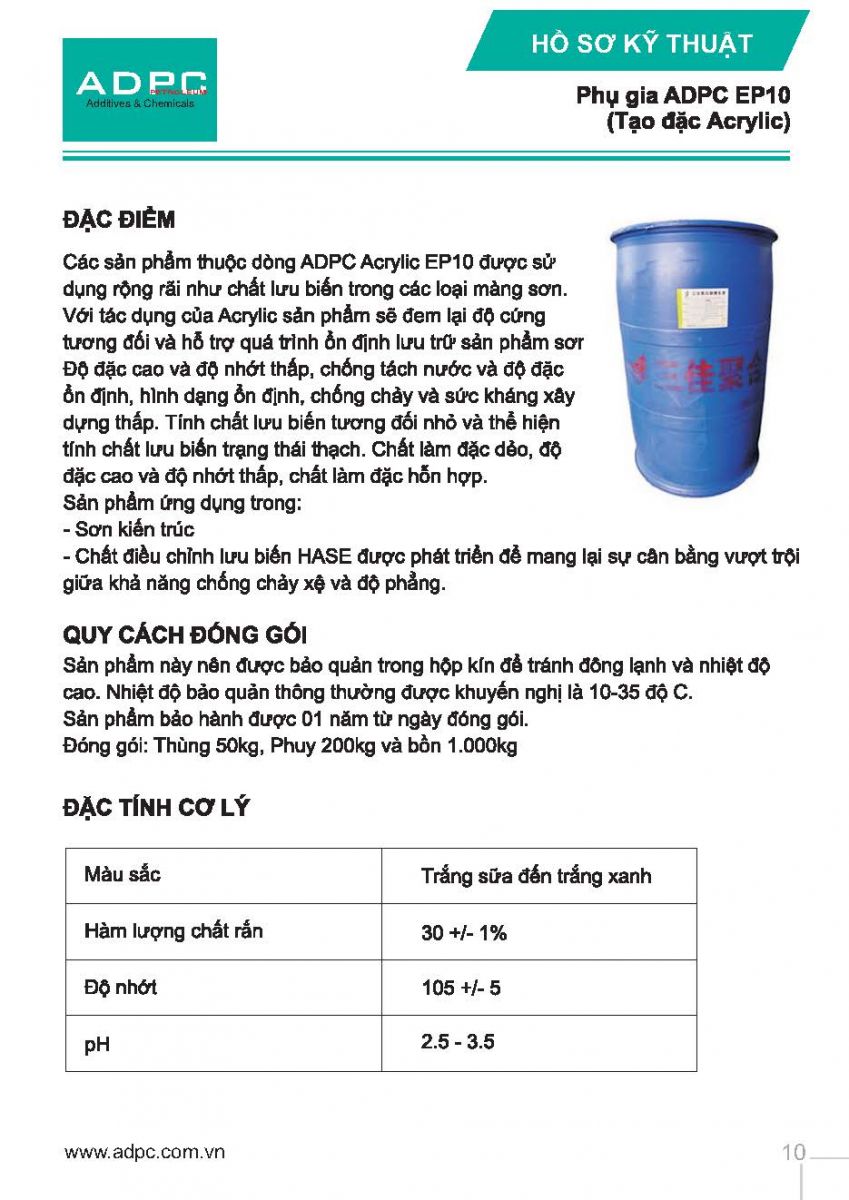 ADPC EP10 là nhánh phụ gia lưu biến, họ acrysol.